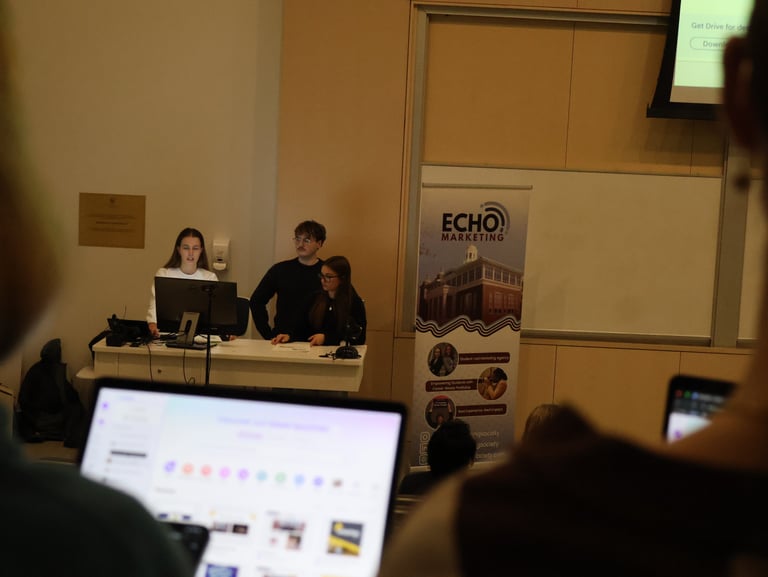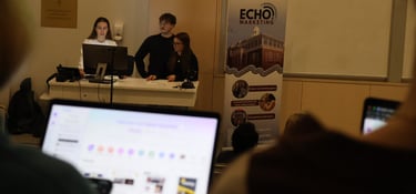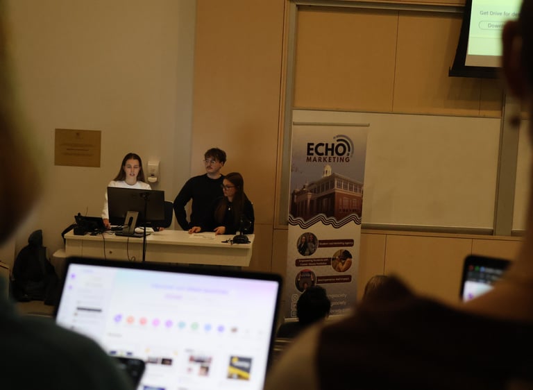 Echo Marketing is a student-led marketing agency, committed to equipping aspiring marketers with hands-on experience, and helping them build their portfolios. Through strategic planning and creative execution, we amplify our client’s voices and drive meaningful engagement through customized, impactful marketing campaigns. Echo is more than a student society, it’s a positive space for knowledge sharing, creativity, and collaboration.