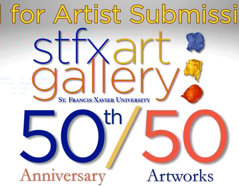 The StFX Art Gallery’s 50/50 Call for Artist Submissions invites artists from Antigonish, Pictou, and Guysborough Counties to submit recent, original work for a special juried exhibition celebrating the gallery’s 50th anniversary. The show will feature 50 artworks by 50 local artists, running from Jul 9 - Sept 19, 2026, and focuses on the themes of chance and convergence. Selected artists receive a professional exhibition opportunity, documentation, and a $350 artist fee.